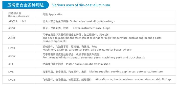 9.压铸铝合金各种用途